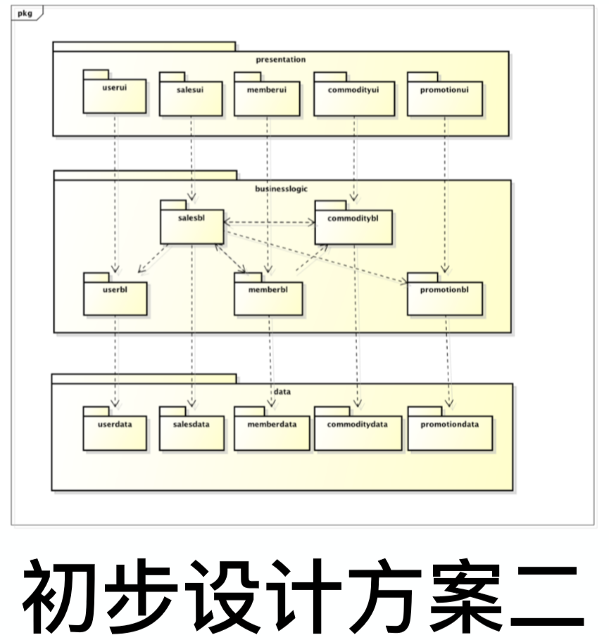 - 为使其满足安全需求,可以增加用户登录与验证功能,可以建立专门的三个模块 (Presentation、Logic、 Data),也可以将该功能并⼊⽤户管理功能,即为 userui, user, userdata 三个模块增加新的职责。