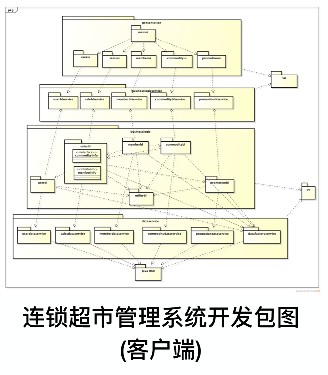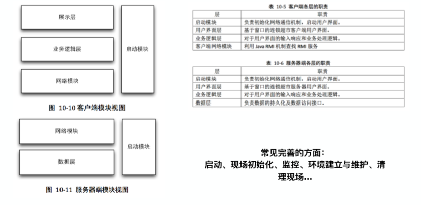 - ⽐如,连锁超市系统中存在客户端和服务器端。那么我们就需要在客户端通过 GUI 界⾯发出指令,通过客户端的业务逻辑处理,访问服务器端的数据,对数据进行修改。只有这样才能表明当前的体系结构可以胜任功能性需求。