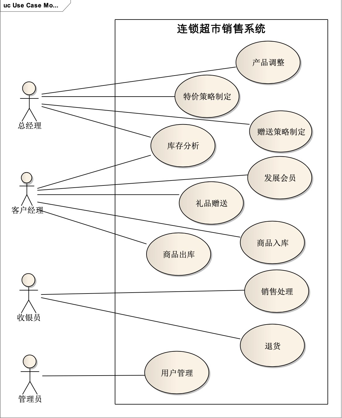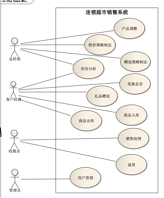 比如连锁超市中,销售用例就是一个最关键的用例;他所覆盖的面最广,如果销售用例可以实现,其他用例实现就比较有信心了;而这个需求需要做到端到端的实现