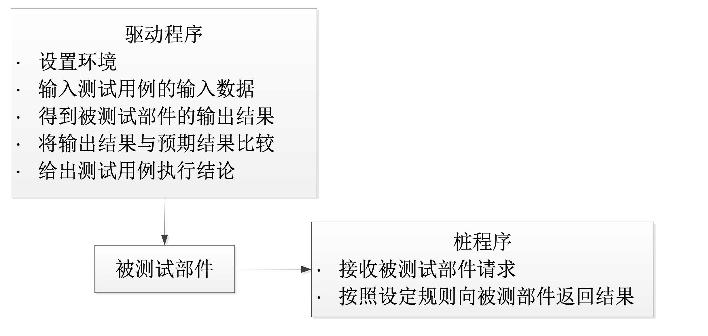 驱动程序调用被测部件,被测部件联系到其他模块,这部分联系用其他模块的桩完成
