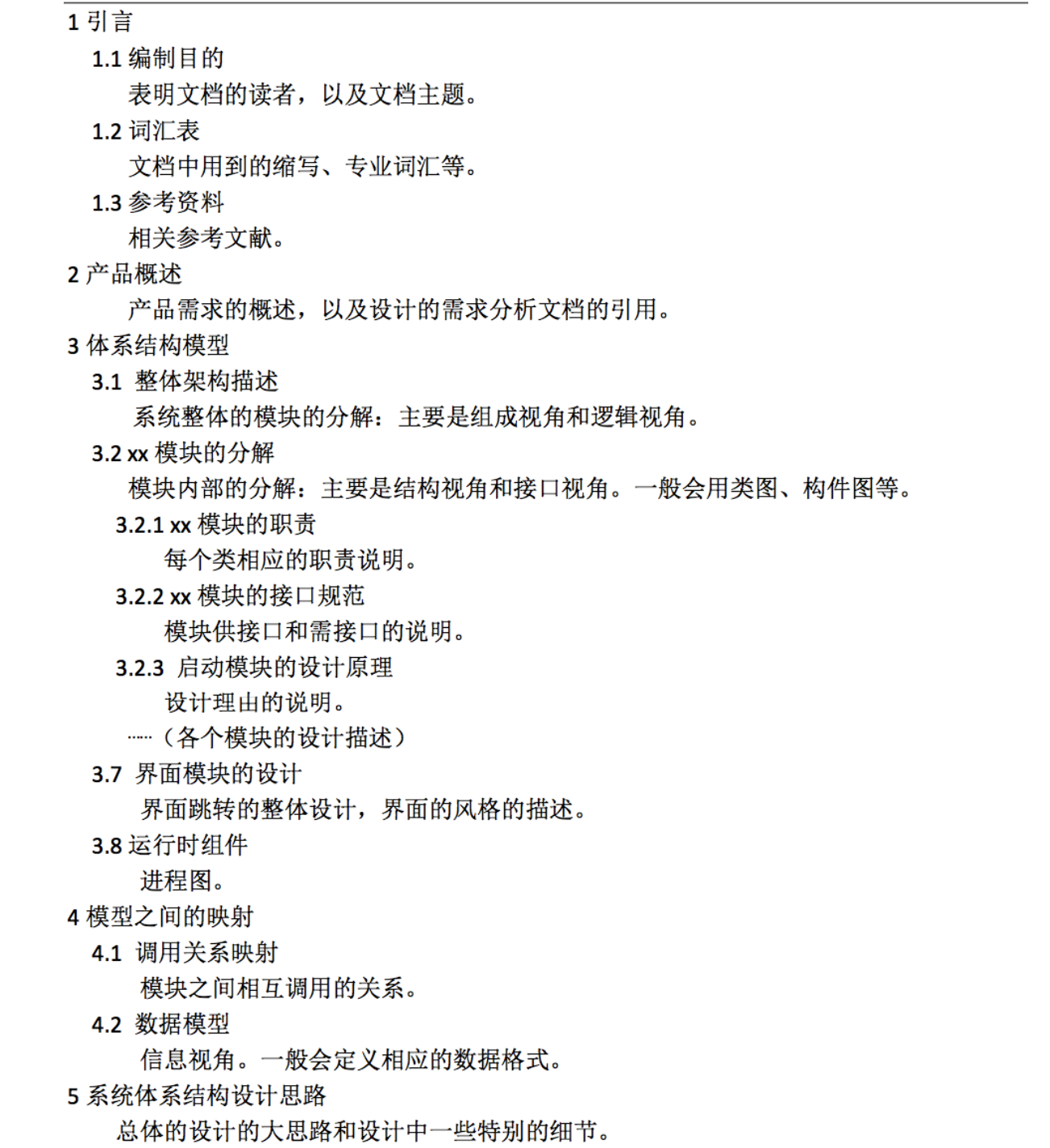 | 体系结构设计是否为后续开发提供了一个足够的视角 | 体系结构设计是后面的蓝图,能否提供视角很重要(如果用户根据此蓝图产生了新的想象,就说明视角不够) |