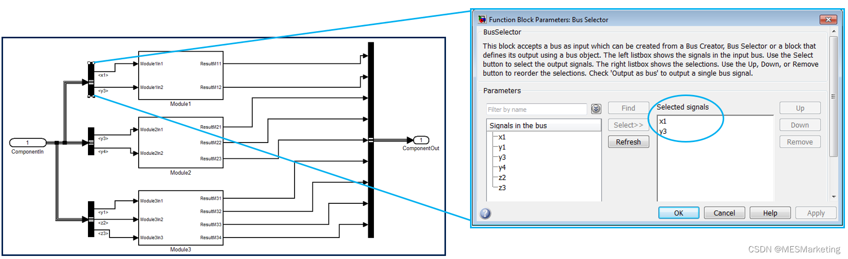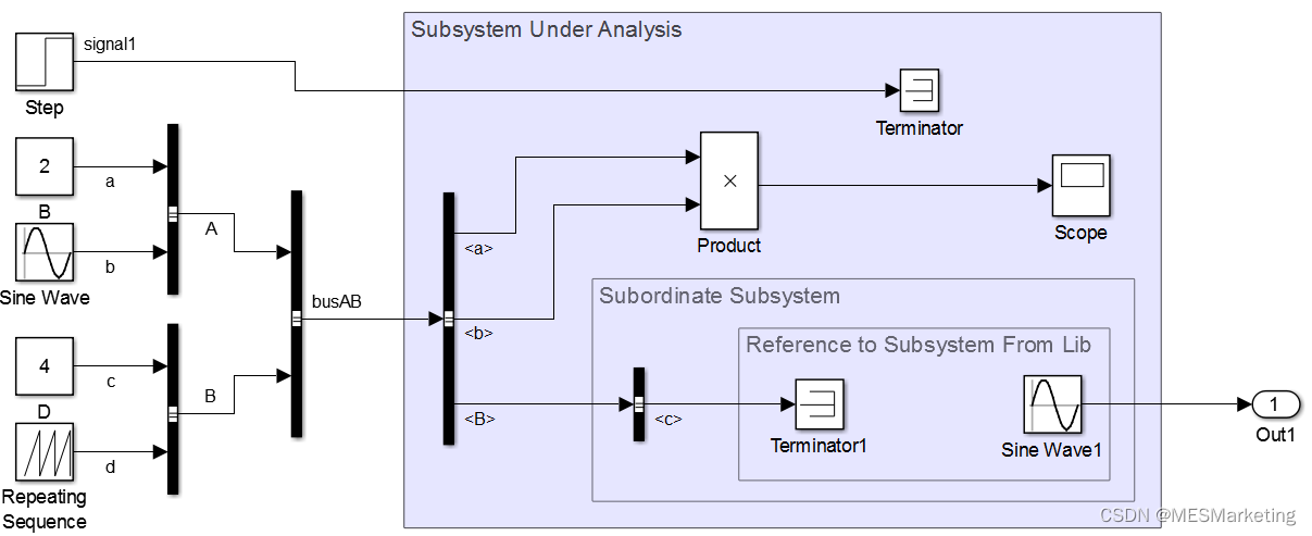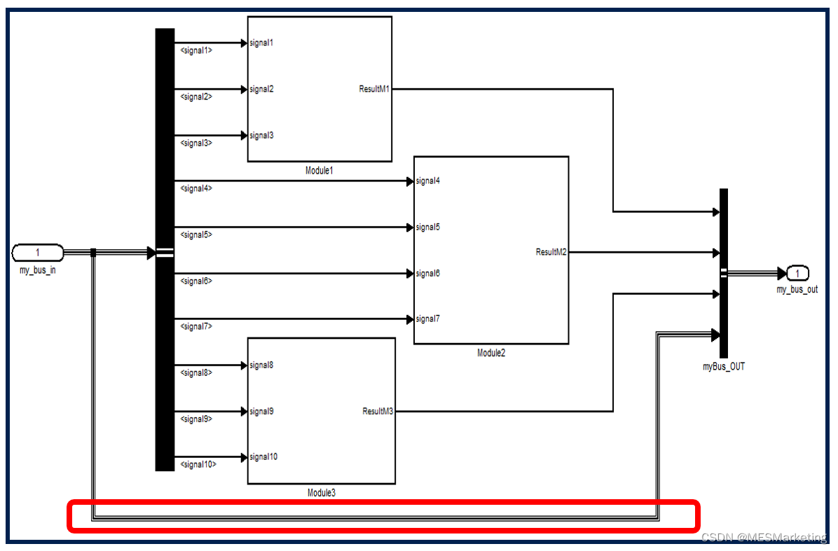 但在某些情况下,如果我们不了解实际的信号流,如我们难以查看子系统的模型或了解所有模型引用的细节,则很难理解这些信号是否被实际使用。此外,典型的用例如图 20中,我们常常把整个总线馈送到子系统中,但是子系统中本身的功能实现只需求其中部分数量的信号,旁路信号实际上并未被子系统所使用。所以我们希望限制接口的大小,确保单元和组件是可重用性的同时,还要避免出现虚拟耦合。为此我们通常采用强制实施显式信号流,以此提高模型的可读性、模块化、可测试性、可维护性和修改的适用性。