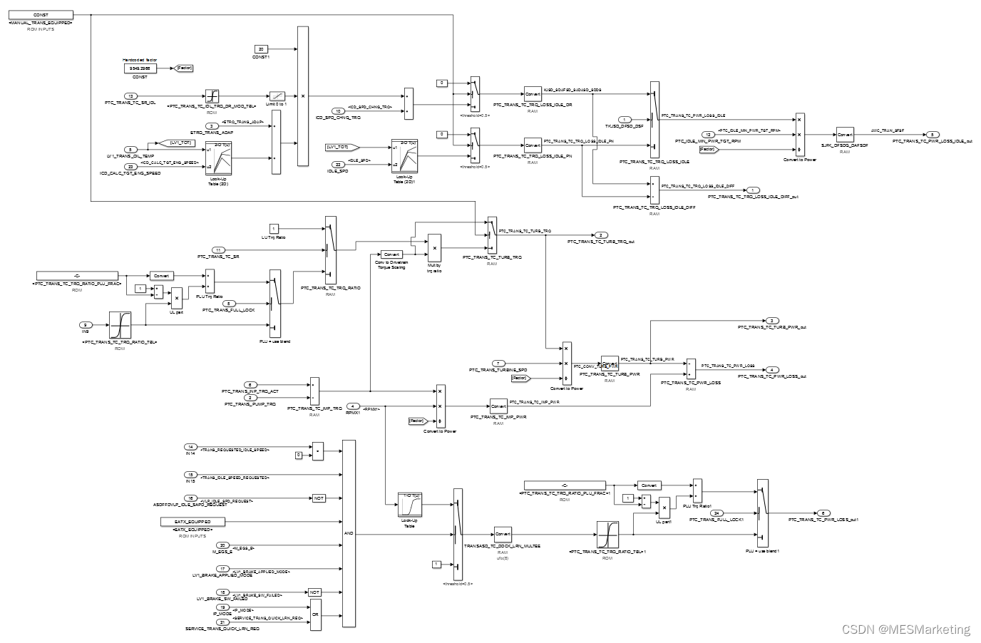 那么接下来我们研究一下这个具有相当高复杂度的大型子系统(参看图 3右和图 4),一般来说600显示其复杂度不是很高,但也是中高范围。对于这样的一个子系统,如何提高可读性?整体看,我们会发现这里包含某种并行计算,有些信号流不是很明确。我们可以尝试将局部复杂度限制在某阈值内,600已经有点过大了。于是我们查看此处的子系统并进行模型重构。