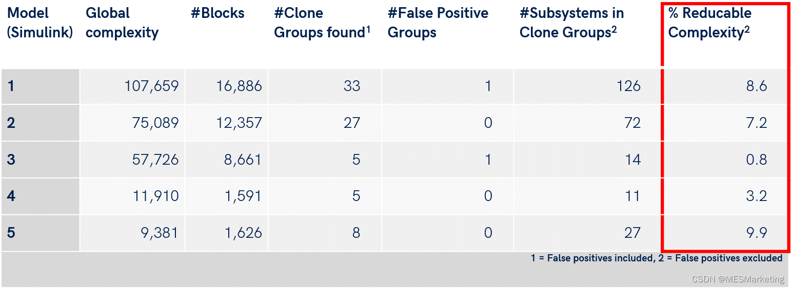 因此,找到大量克隆和克隆组,并用库引用替换它们,是针对克隆组件的最佳实践。以便显着降低全局复杂度,这意味着大小和工作量。对一个不同类型大量模块构成的复杂模型系统,通常各模型模块分组分散开发,容易出现模型的复制粘贴和克隆组的情况,模型系统呈现相对较高的全局复杂度。以某项目在克隆组及复杂度方面的研究统计结果【2】为例(图 23),系统中包含了大量的克隆组件和重复的子系统。对克隆组及克隆子系统的优化,可实现10%左右的复杂度缩减。一般来讲,对于大型工程,10%的复杂度降低意味着10%的评审测试工作的减少,意味着大量的人工和成本的节省。