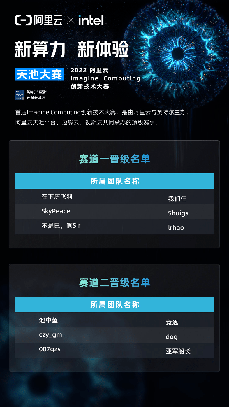 2023年1月,由阿里云与英特尔主办,阿里云天池平台、边缘云、视频云共同承办的“新算力 新体验”Imagine Computing创新技术大赛复赛圆满落幕。经过两个多月的激烈角逐,12支入围队伍,从海内外8个国家和地区的6900余支参赛队伍中脱颖而出,进入总决赛阶段的比拼。