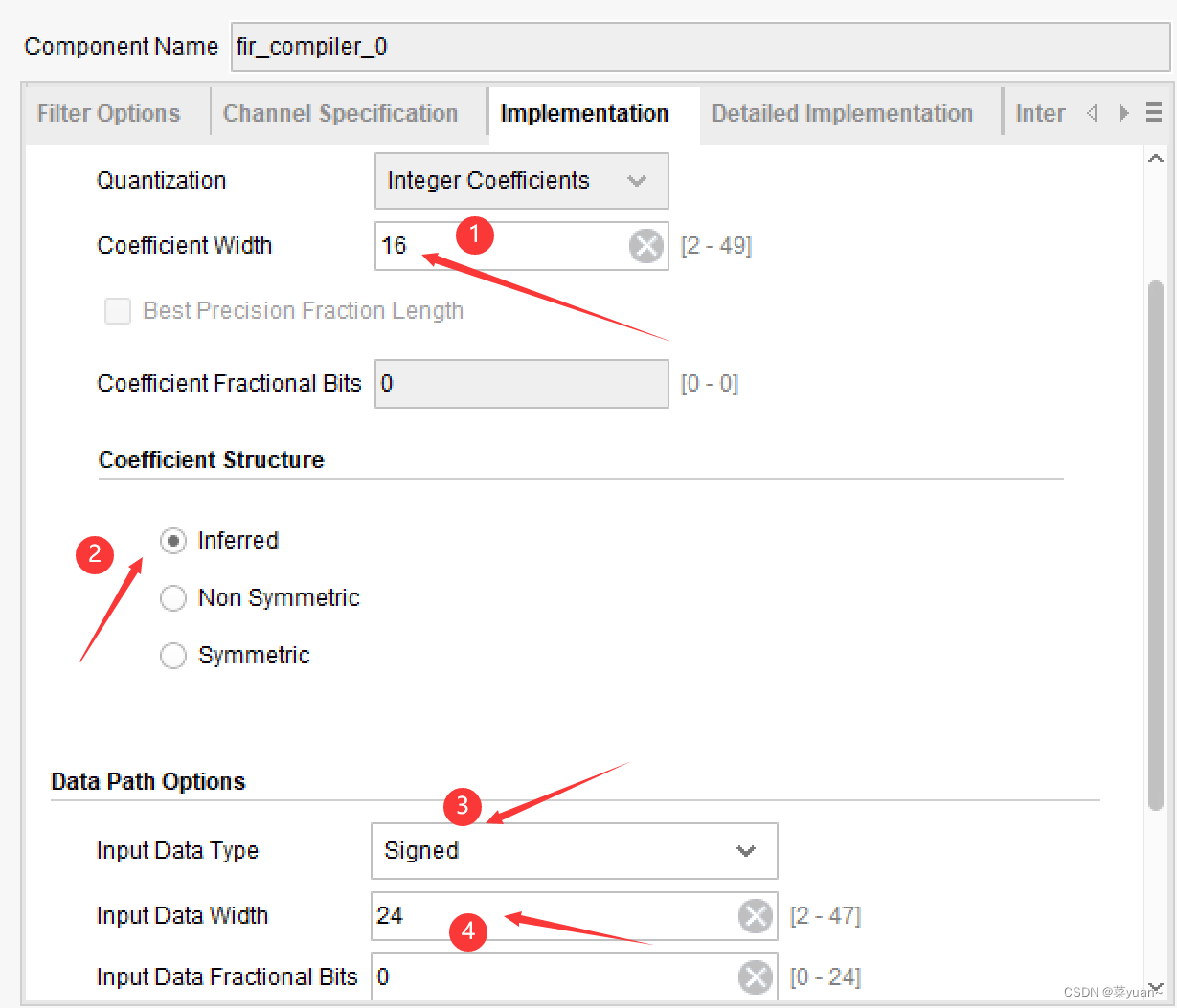 (3) 输入信号位宽为24bit,滤波器抽头系数16个