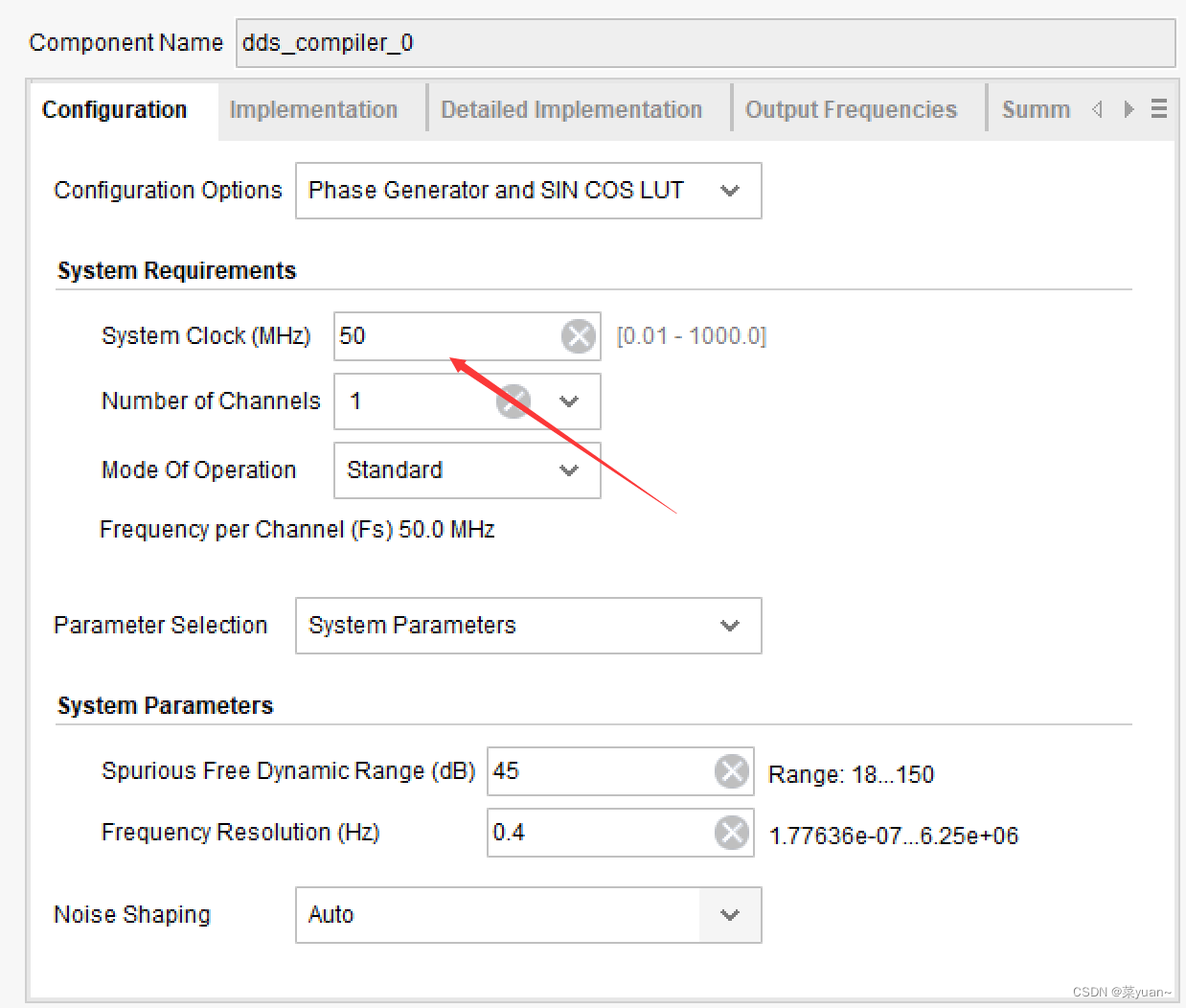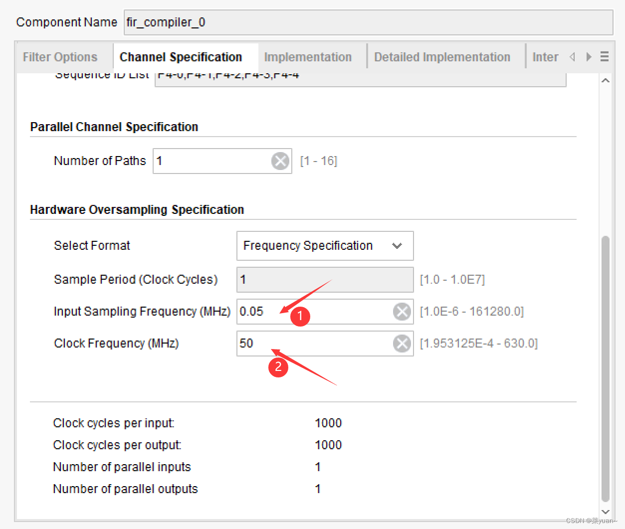 (2) 采样频率 50kHz,时钟频率 50MHz