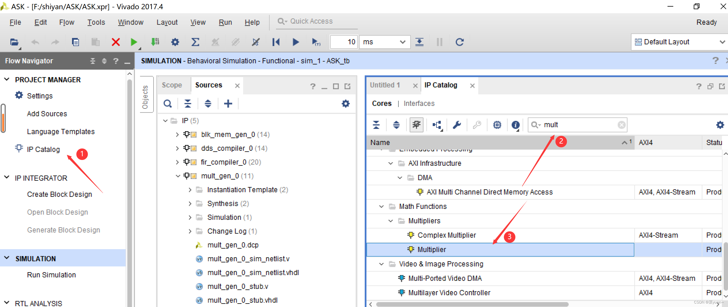 6. 点击IP Catalog,搜索mult,选择Multiplier