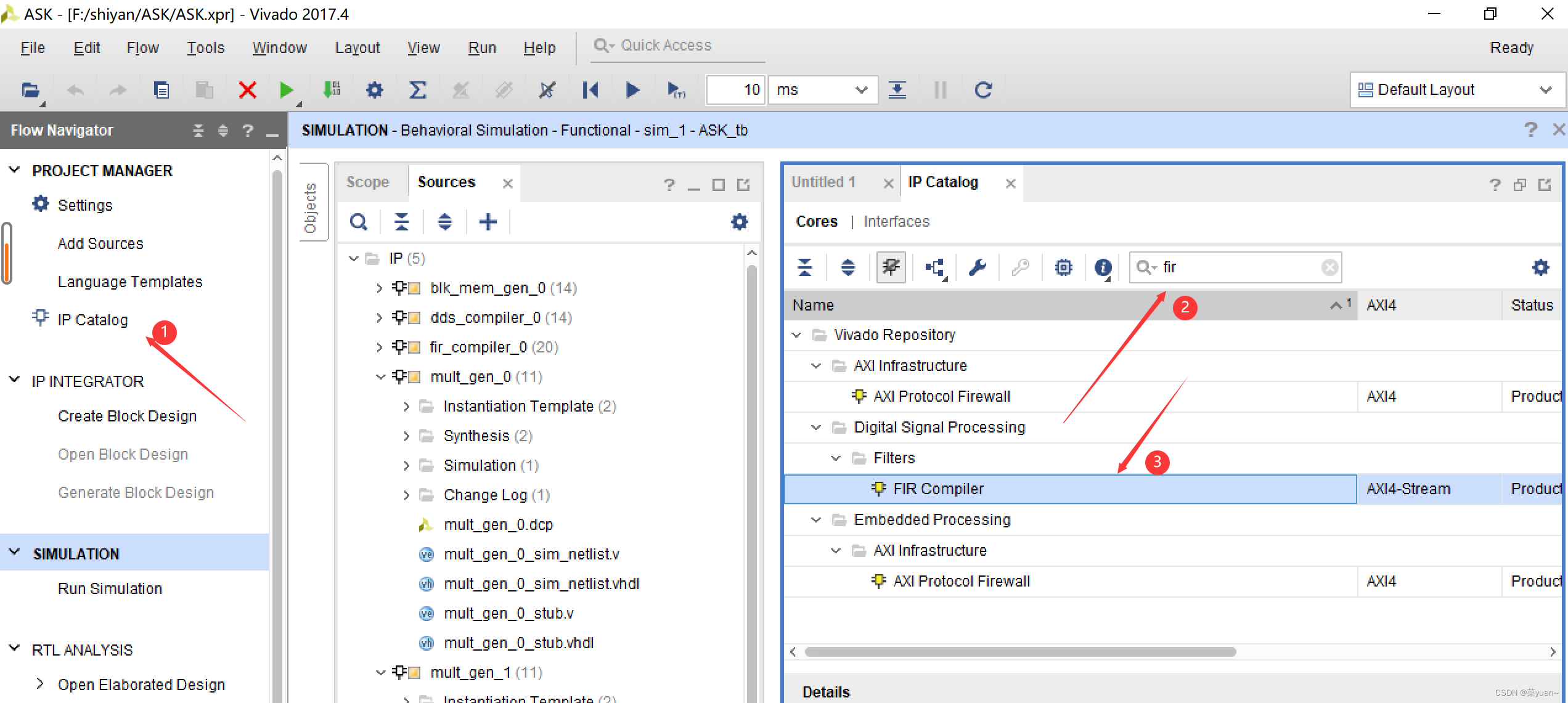 8. 点击IP Catalog,搜索fir,选择FIR Complier