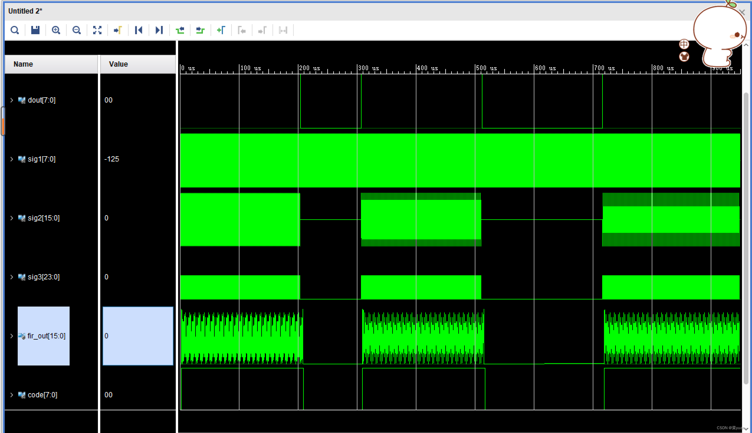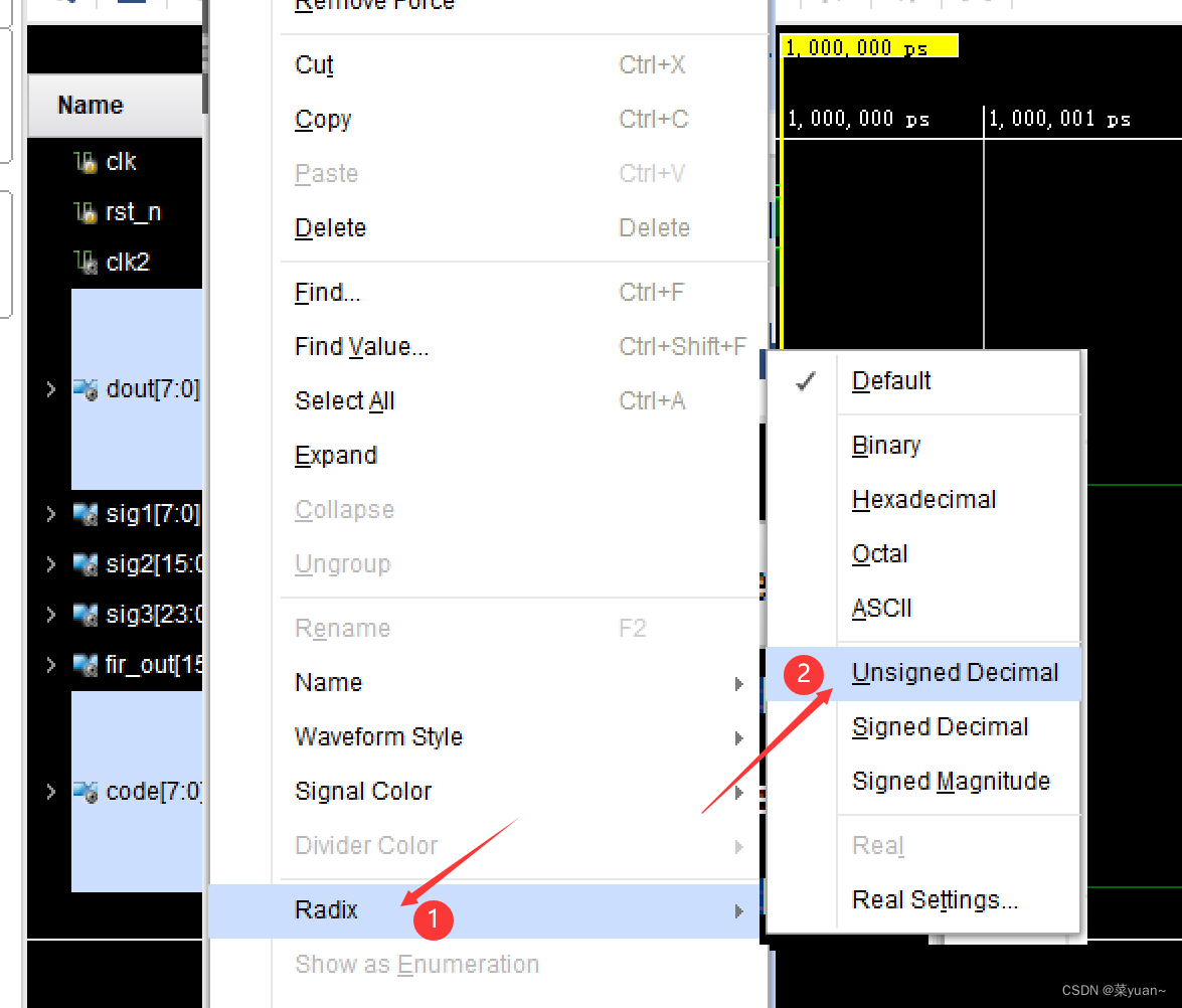 除fir_outd其余信号的Waveform Style同样操作,Radix选择Signed Dicemal
