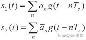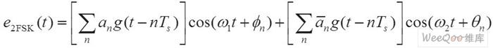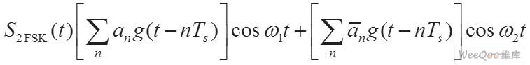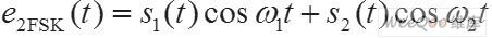 也就是说,一个2FSK信号可以看成是两个不同载频的2ASK信号的叠加。因此,2FSK信号的时域表达式又可以写成: