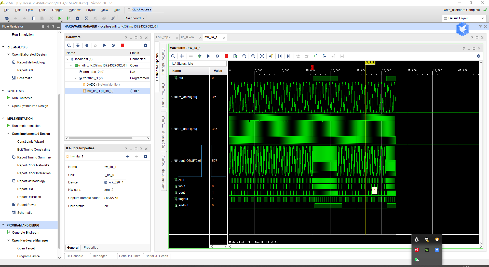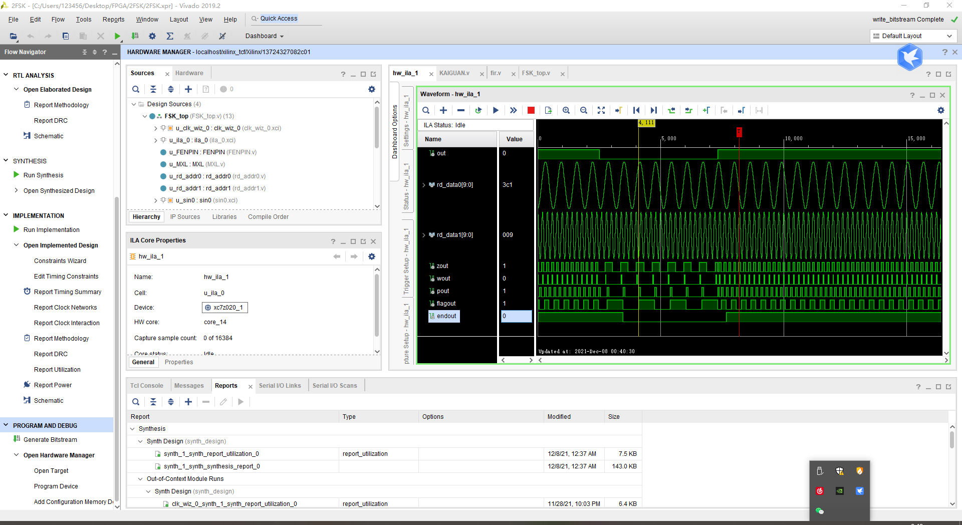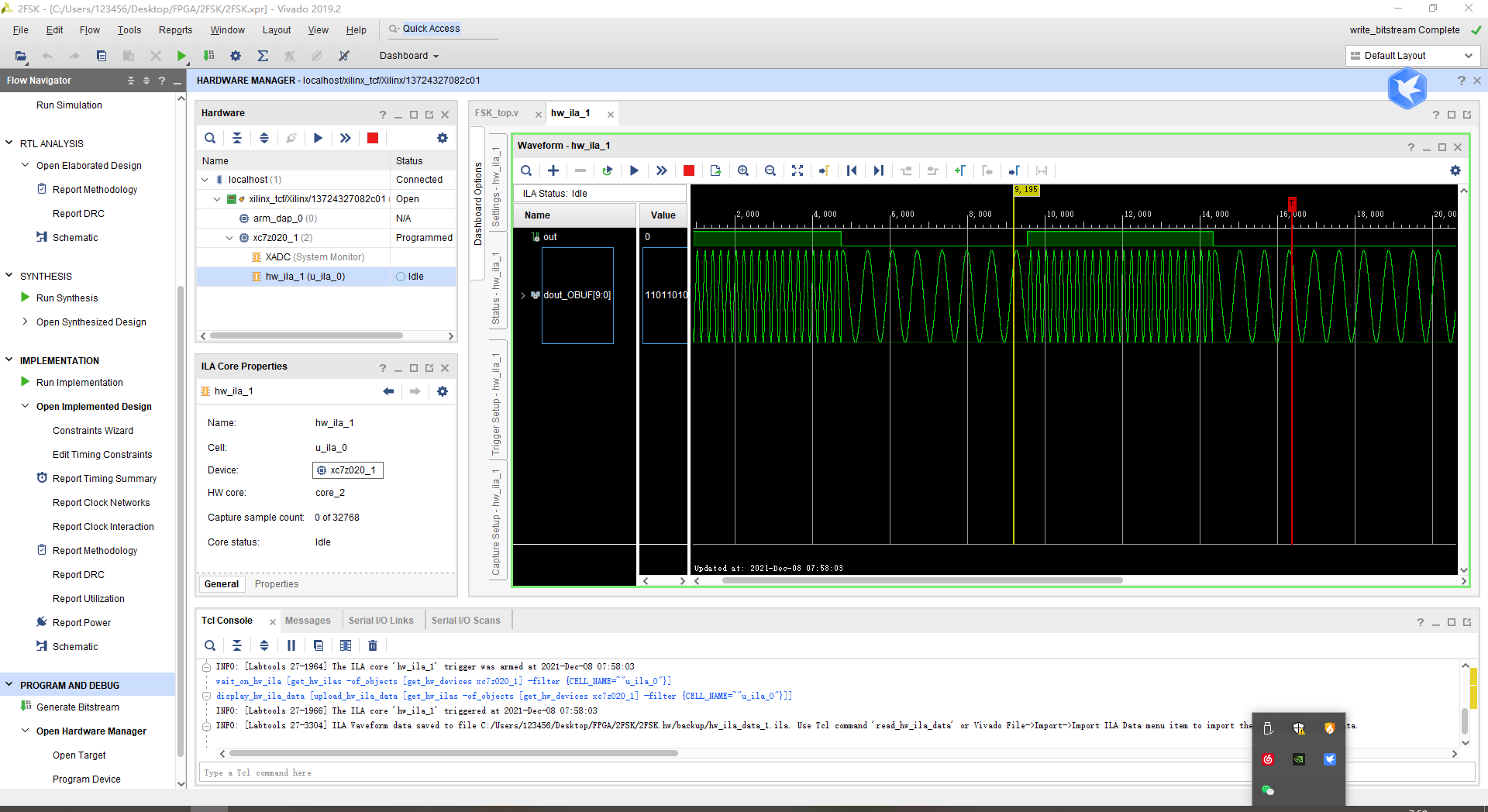 以上就是任性鸵鸟最近收集整理的关于基于FPGA的2FSK调制解调器第一部分:实训目的第二部分:实训准备(包含实训设备及器材)第三部分:实训要求第四部分:实训内容第五部分:源代码第六部分:实训结果的全部内容,更多相关基于FPGA内容请搜索靠谱客的其他文章。