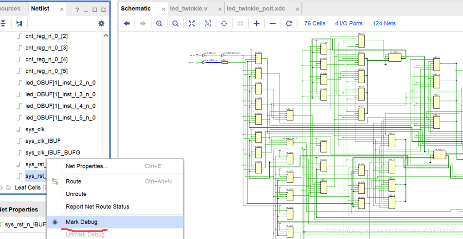 整体电路Vivado可实现硬件描述语言或网表文件(VHDL、Verilog、BDF、TDF、EDIF、 VQM)对应的RTL电路图的生成。其方法为:选择Tools︱RTL Viewer,可以打开FSK 工程个层次的RTL电路图,双击图形中有关模块,或选择左侧各项,可了解个层次的电路结构,如下图所示
