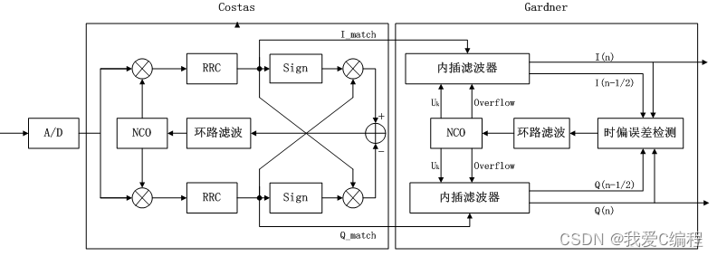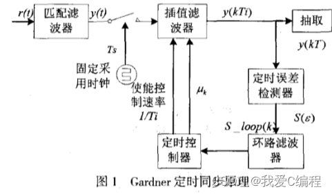 Gardner定时误差算法通常用在BPSK、QPSK信号,通过改进可以应用在QAM等多进制基带信号中。Gardner定时误差算法,该算法的一个特点是每个符号只需要使用两个采样点,一个是strobe点,即最佳观察点,另外一个是midstrobe点,即两个观察点之间的采样点。Gardener环中的数控振荡器与锁相环路中的NCO功能完全不同,这里的NCO作用是产生时钟,即确定内插基点mk,同时完成分数间隔uk的计算,以提供给内插器进行内插。