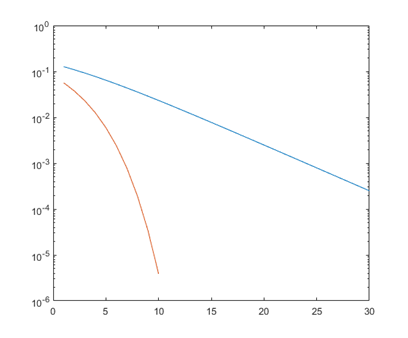semilogy(ber_awgn(1:10));