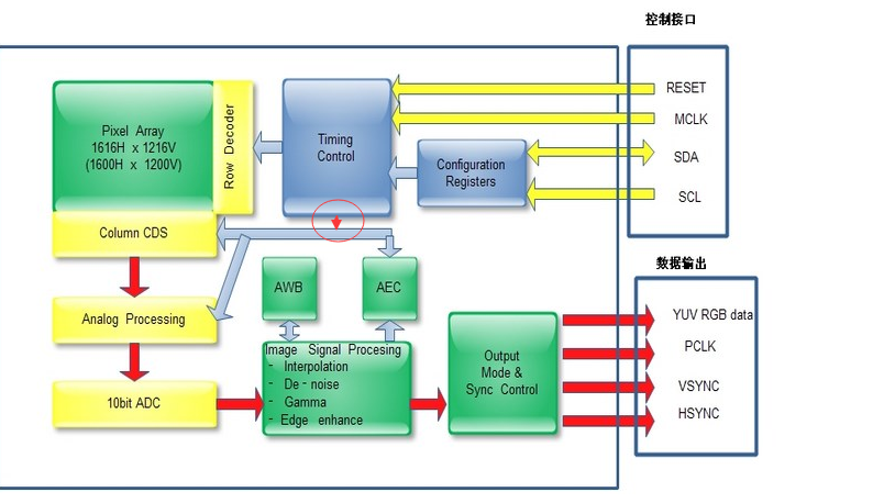 时序控制,主要是根据主控芯片提供的MCLK时钟来控制行场同步、自动曝光AEC等。因为这些都需要时钟的配合。