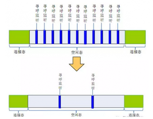 原理:(1)通过设计一套定时器,使得终端和网络具有严格的时间同步,防止出现终端在睡觉,网络不断寻呼。 或者没有按时醒来; (2)终端测和网络侧可以协商睡眠计划。