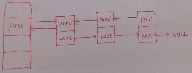 下面再来看看如果hlist_node中包含两个分别指向前驱结点和后继结点的指针