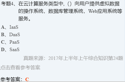 按照云计算服务提供的资源层次,可以分为IaaS、PaaS和 SaaS等三种服务类型。