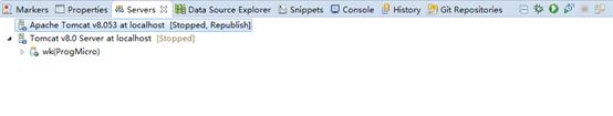 图中名称为“Apache Tomcat V8.053 at localhost”的Server即为刚创建成功的Server。