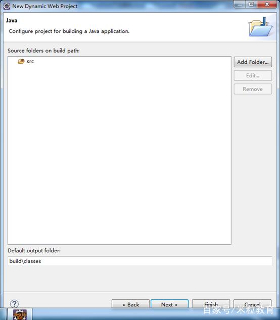 (2)设置项目代码存储目录,项目代码一般存储到工程src目录下,采用默认值即可。单击【Next>】按钮,进入Web配置模块,如下图所示。