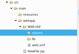 首先,在项目的src/main/webapp/WEB-INF文件夹下,建立lib和classes两个文件夹,如图所示: