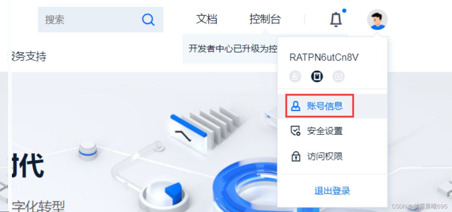 首先在OneNet云平台这边,我们登录之后,在自己头像这边点击账号信息;