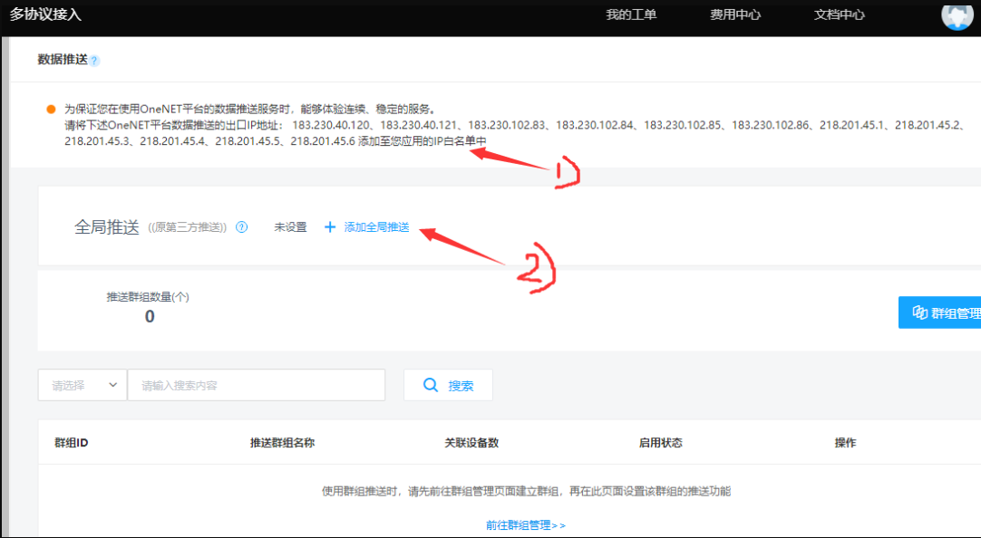 点击OneNET控制台左侧列表的"数据推送HTTP推送"
