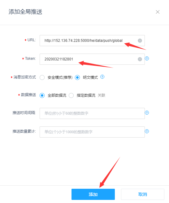 OneNET平台提供数据推送功能,可以将平台作为客户端,将相关信息以HTTP/HTTPS请求的方式,发送给应用服务器。