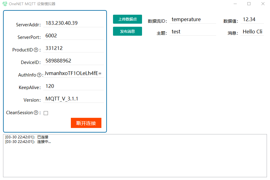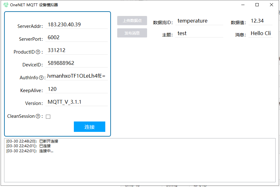 下图是我创建好的一个演示数据推送的MQTT产品: