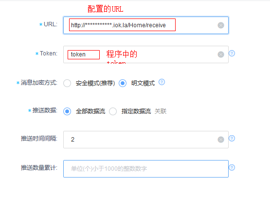 OneNET平台的对接URL为:http://**********.la/Home/receive