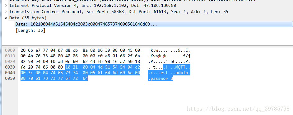也就是数据包前两个10 21后面是可变头:协议名、协议级别、连接标志、清除会话、遗嘱标志、遗嘱、遗嘱保留、用户名标志、密码标志、保持连接。然后是有效载荷:客户端标识符、遗嘱主题、遗嘱消息、用户名、密码。#define MQTT_StaCleanSession 1 //清理会话 #define MQTT_StaWillFlag 0 //遗嘱标志 #define MQTT_StaWillQoS 0 //遗嘱QoS连接标志的第4和第3位。 #define MQTT_StaWillRetain 0 //遗嘱保留 #define MQTT_StaUserNameFlag 1 //用户名标志 User Name Flag #define MQTT_StaPasswordFlag 1 //密码标志 Password Flag #define MQTT_KeepAlive 60 //心跳包秒数 #define MQTT_ClientIdentifier "test" //客户端标识符 Client Identifier #define MQTT_WillTopic "" //遗嘱主题 Will Topic #define MQTT_WillMessage "" //遗嘱消息 Will Message #define MQTT_UserName "admin" //用户名 User Name #define MQTT_Password "password" //密码 Password void GetDataConnet(unsigned char *buff)//获取连接的数据包正确连接返回20 02 00 00 { unsigned int i,len,lennum = 0; unsigned char *msg; buff[0] = GetDataFixedHead(MQTT_TypeCONNECT,0,0,0); buff[2] = 0x00; buff[3] = 0x04; buff[4] = 'M'; buff[5] = 'Q'; buff[6] = 'T'; buff[7] = 'T'; buff[8] = 0x04;//协议级别 Protocol Level buff[9] = 0 | (MQTT_StaCleanSession << 1) | (MQTT_StaWillFlag << 1) | (MQTT_StaWillQoS << 3) | (MQTT_StaWillRetain << 5) | (MQTT_StaPasswordFlag << 6) |(MQTT_StaUserNameFlag << 7);//连接标志 buff[10] = MQTT_KeepAlive >> 8; buff[11] = MQTT_KeepAlive; len = strlen(MQTT_ClientIdentifier); buff[12] = len >> 8; buff[13] = len; msg = MQTT_ClientIdentifier; for(i = 0;i<len;i++) { buff[14+i] = msg[i]; } lennum += len; if(MQTT_StaWillFlag) { len = strlen(MQTT_WillTopic); buff[13 + lennum + 1] = len >> 8; buff[13 + lennum + 2] = len; lennum += 2; msg = MQTT_WillTopic; for(i = 0;i<len;i++) { buff[14+lennum+i] = msg[i]; } lennum += len; len = strlen(MQTT_WillMessage); buff[12] = len >> 8; buff[13] = len; lennum += 2; msg = MQTT_WillMessage; for(i = 0;i<len;i++) { buff[14+lennum+i] = msg[i]; } lennum += len; } if(MQTT_StaUserNameFlag) { len = strlen(MQTT_UserName); buff[13 + lennum + 1] = len >> 8; buff[13 + lennum + 2] = len; lennum += 2; msg = MQTT_UserName; for(i = 0;i<len;i++) { buff[14+lennum+i] = msg[i]; } lennum += len; } if(MQTT_StaPasswordFlag) { len = strlen(MQTT_Password); buff[13 + lennum + 1] = len >> 8; buff[13 + lennum + 2] = len; lennum += 2; msg = MQTT_Password; for(i = 0;i<len;i++) { buff[14+lennum+i] = msg[i]; } lennum += len; } buff[1] = 13 + lennum - 1;//最后计算长度 }4.3、订阅主题