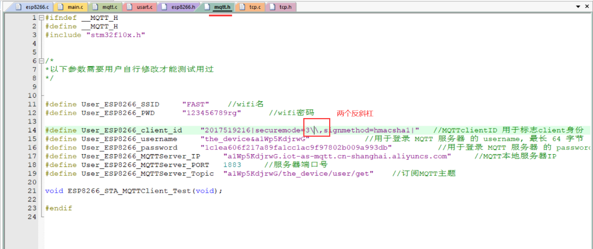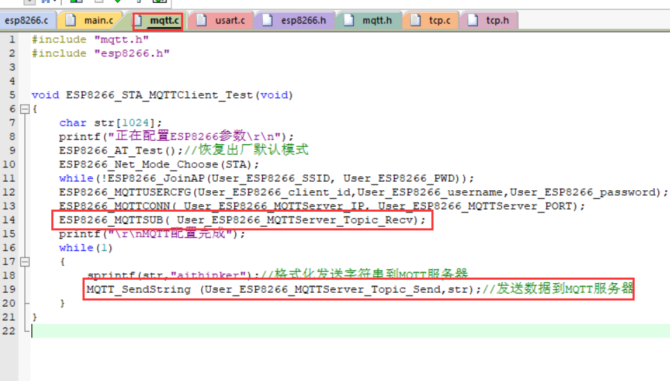 ESP8266_STA_MQTTClient_Test();//测试MQTT通讯