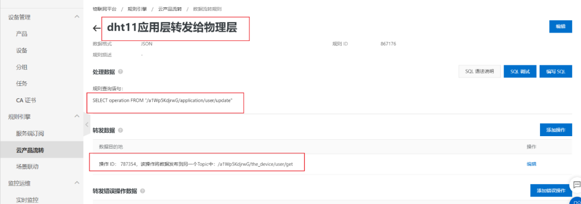 点击添加操作,将数据转发给应用层topic,注意是物理层的update到应用层的get,如图5.6所示。