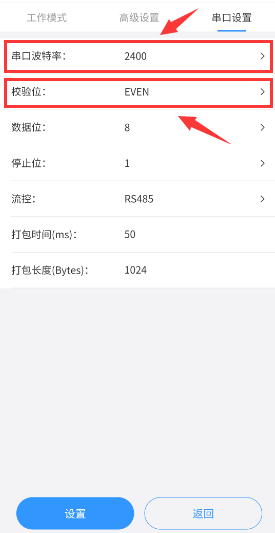 3.打开参数设置,设置串口设置:波特率设为2400,校验位选择EVEN。