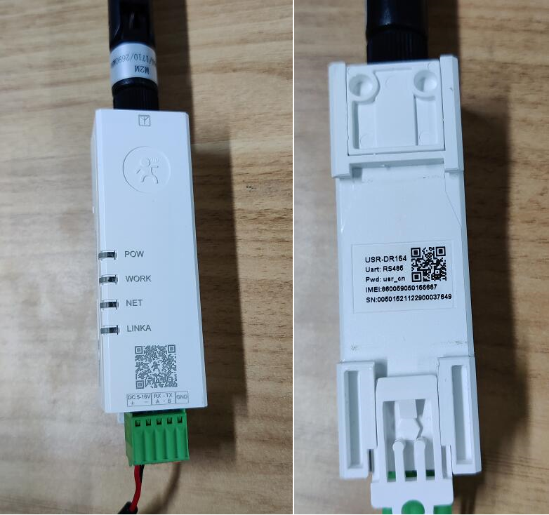 1.DTU正面二维码下方标识正负极连接电源,A,B端连接电表,到开手机微信扫码,扫描DTU二维码进入小程序,打开蓝牙连接与DTU背部IMEI相同编号的蓝牙,进入连接,密码为usr_cn。