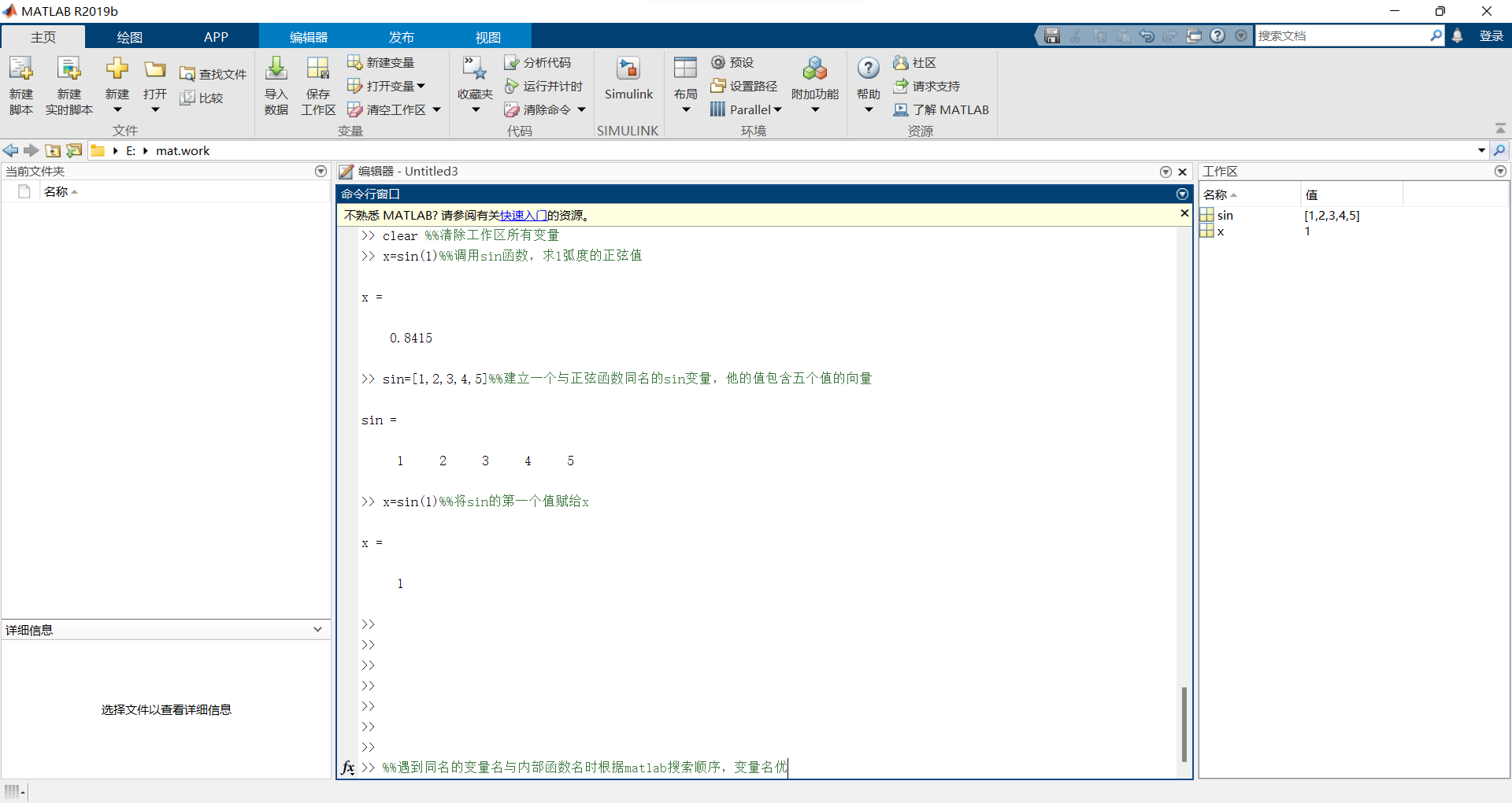 matlab第一节:基础知识