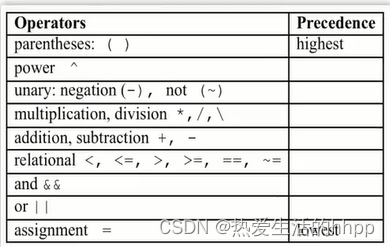 关系运算符:<,<=,>,>=,==,~=(不等于)