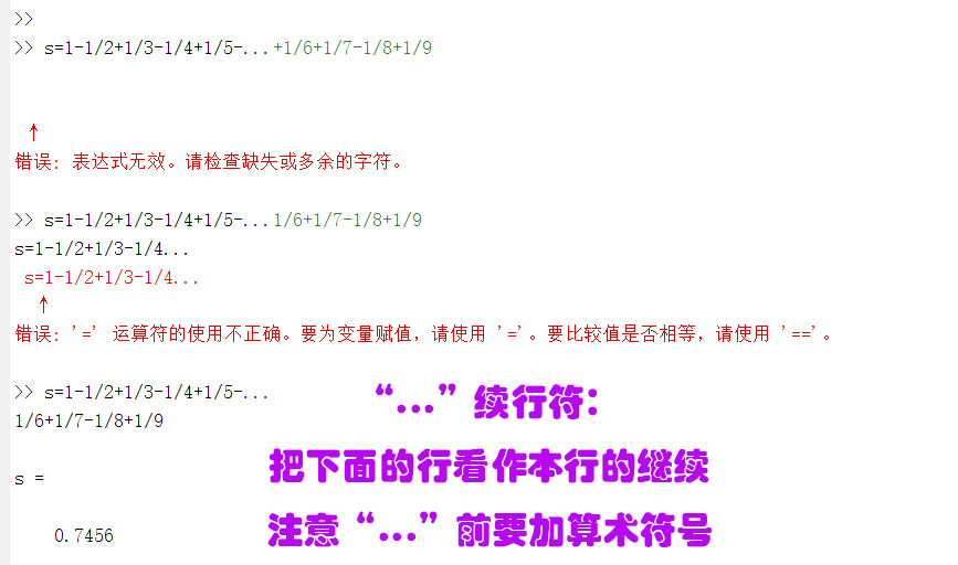 若两个矩阵不同型,则MATLAB将给出错误信息。