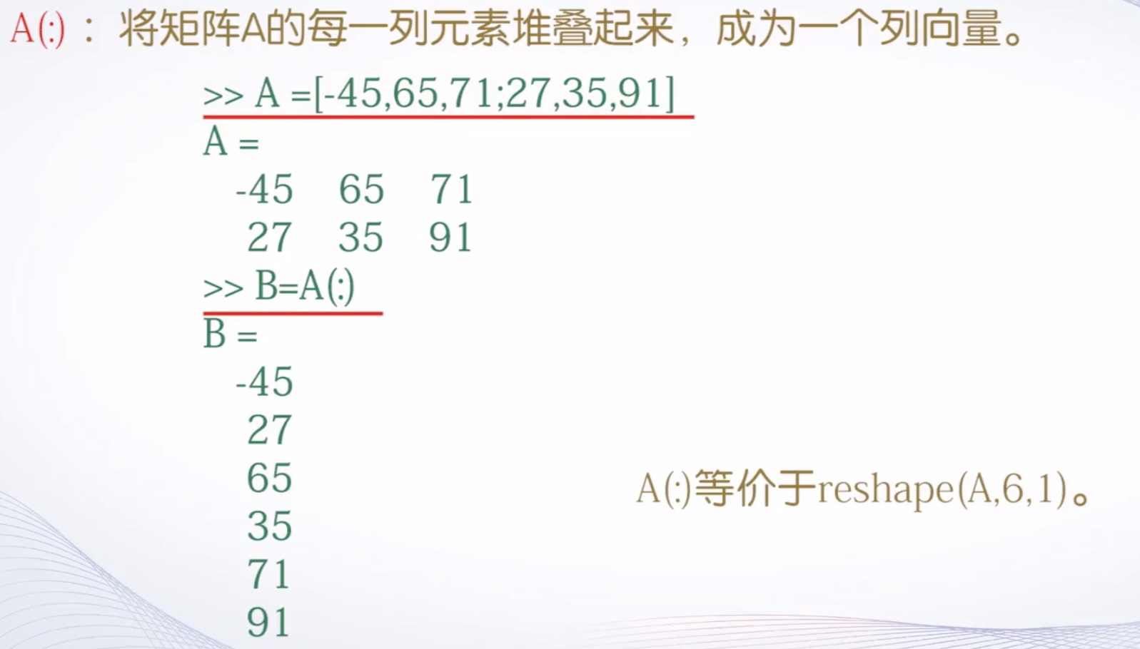 (1)通过下标来引用矩阵的元素