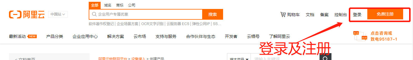 1.1 登录阿里云物联网平台,新用户首先注册账号