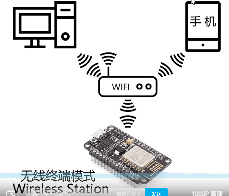 - 2,无线终端模式: wireless station 就是在局域网内 此时手机 电脑 esp8266都是节点