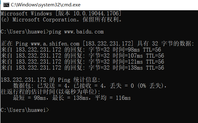 - 在命令行中输入 ping www.baibu.com 可以得到网站的IP地址 也可以用来检查网络连接 通过 nslookup 可以对域名进行解析