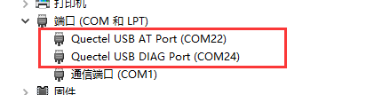 其中 Quectel USB AT Port 为 AT指令调试串口;Quectel USB DIAG Port 为 Log抓取端口。