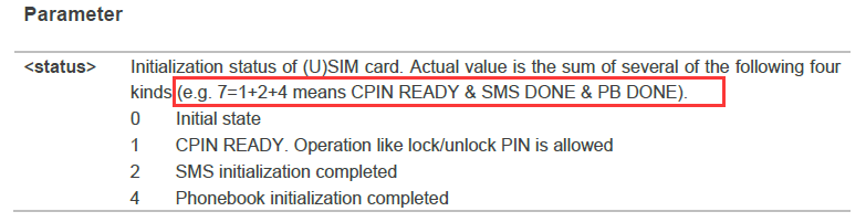 AT+CPAS=?:查询模块支持的活动状态列表。