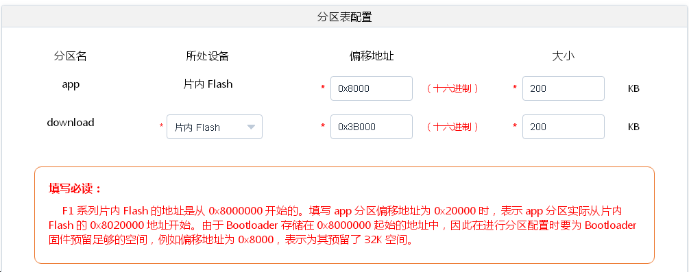 | app | 自定义 | 自定义 | 片内FLASH | |