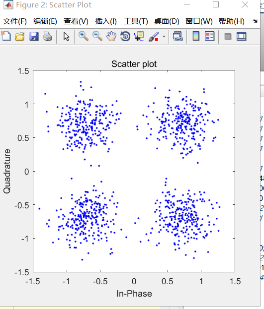 下图:左边snr = 10db,过信道后的星座图,右图snr = 20db,过信道后的调制信号