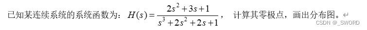 MATLAB中提供了roots函数计算系统的零极点,提供了pzmap函数绘制连续系统的零极点分布图。