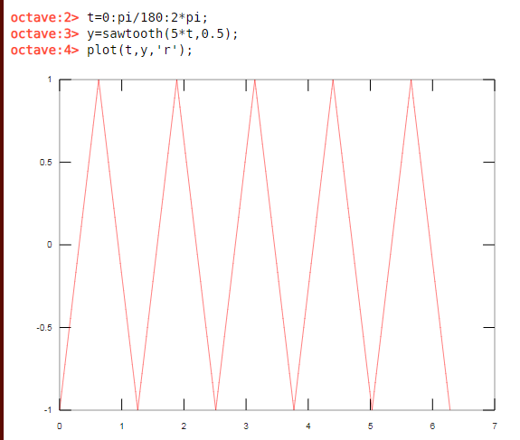 三角波信号的产生调用sawtooth(t,width),,width值为0-1之间;