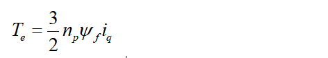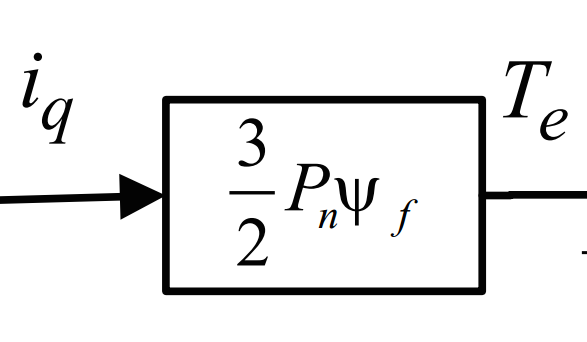 第四个:转矩和电流的转换。只有到这这个地方,才涉及到具体的物理量的转化,因此传递函数的来源不再源于计算时间上的影响,而是来源于具体的数学模型,也就是转矩大小和电流大小之间的关系式,如下图所示,按照此公式可导出传递函数为纯增益环节,如下右图所示。